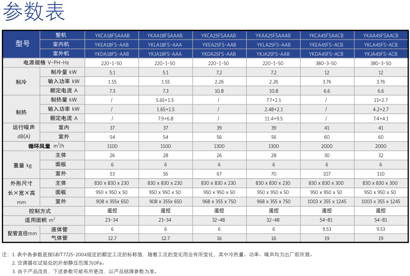 YKC(A)A-B系列四面出风嵌入式分体空调,共有单冷、热泵共6个型号,主要适用于宾馆、商厦、写字楼、住宅等场所作室内空气调节之用。
