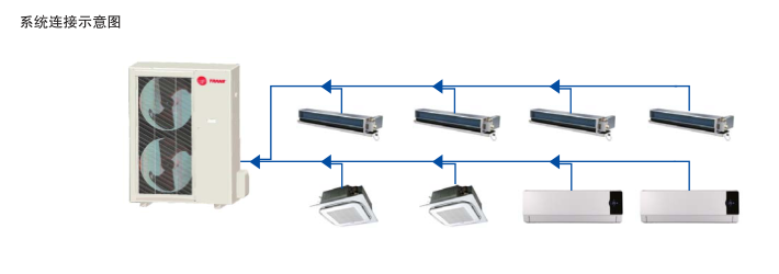 Greenergy是特灵公司最新研发的新一代变频多联空调机组。它采用先进的直流变频压缩机;实验室优化设计的冷凝风扇;精确可靠的过热度、过冷度控制逻辑;领先的180°正弦波直流变频技术。具有高能效、低噪音、稳定可靠、控温精准等一系列优点。 ◆高效节能 Greenergy机组具有业内优秀的能效比,超越国家一级能效标准,IPLV高达4.5。 ◆低噪静音 室外机采用优化设计的冷凝风扇叶片和导风圈。新型叶片可有效抑制顶端涡流;导风圈可减小叶片吸风所产生的紊流,从而获得明显的静音效果。 室内机采用静音设计,确保暗藏式机组高风速运行时的噪音仅35dB*,创造宁静的室内环境。 ◆控制先进 温度采用过热、过冷度调节。电子膨胀阀根据系统各点温度,自动调节,合理分配冷媒流量,使系统时刻处于最佳工作点,精确控制房间温度±0.5℃。采用180°正弦波直流变频技术,电流对压缩机的驱动力矩成平滑曲线,减小压缩机振动,节能降噪;防止压缩机退磁,延长使用寿命。 ◆防护完善 直流变频压缩机具有软启动功能,启动电流小,减小对电网的冲击,同时具有谐波过滤装置,消除变频引起的高次谐波干扰。 ◆组合自由 内机形式多样,有暗藏式、天井式、挂壁式,可根据装修风格和房间用途自由选择,一台外机可连接多达8台内机,无需占用更多的室外安装空间,方便安装检修。 ◆超长配管 冷媒单管最大总长可达80m,内外机之间的高差可达10m,使得安装和设计更加灵活。 ◆宽运行温度范围 机组制冷环境温度范围:20~48℃,制热运行温度范围:-10~24℃ ◆使用舒适 1.高频化霜:高频化霜保证除霜迅速,缩短除霜时间,大大延长制热时间,显著提高制热效果。 2.优先级控制:在同一系统的内机间转移冷媒流量10-20%,优先满足负荷加大的内机需求;当系统中内机制冷制热模式冲突时,优先启动的内机正常运行,而其它运行模式的内机处于待机状 态。 3.速冷速热:机组高频运转,制冷/热能力提高20-40%,迅速达到房间设定温度。